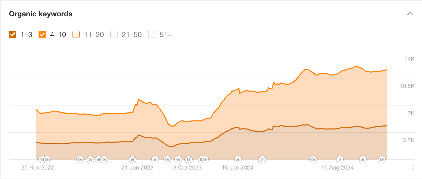 The count of first-page keyword rankings climbed steadily post-migration, reinforcing the long-term benefit of consolidation and optimized architecture.